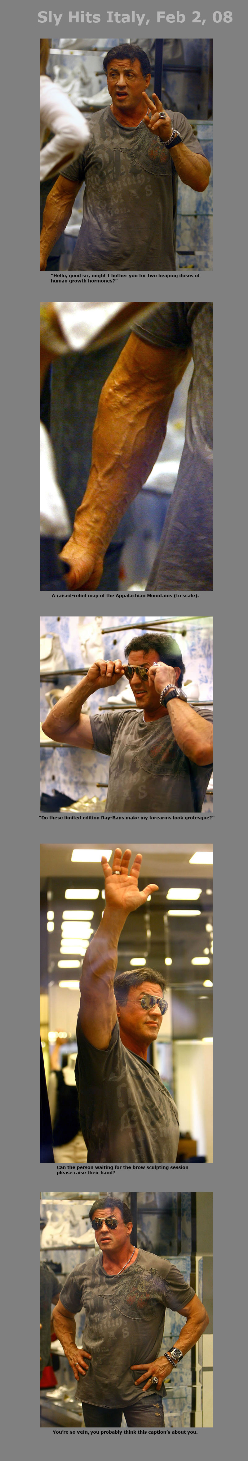Who’s arm? Hint:Â He’s 61 years old. Answer and more pics after the jump. Â Sylvester Stallone This entry was posted in Pop Culture. Bookmark the permalink.