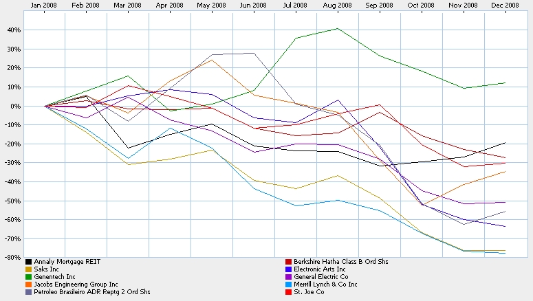 From their ten stocks, only one has a positive gain for the year. I threw the stocks in this chart, but feel free to click the one below to enlarge it.