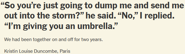 To mark the winter holidays — an especially popular time to break up — we asked people around the world for their most striking parting words to each other.