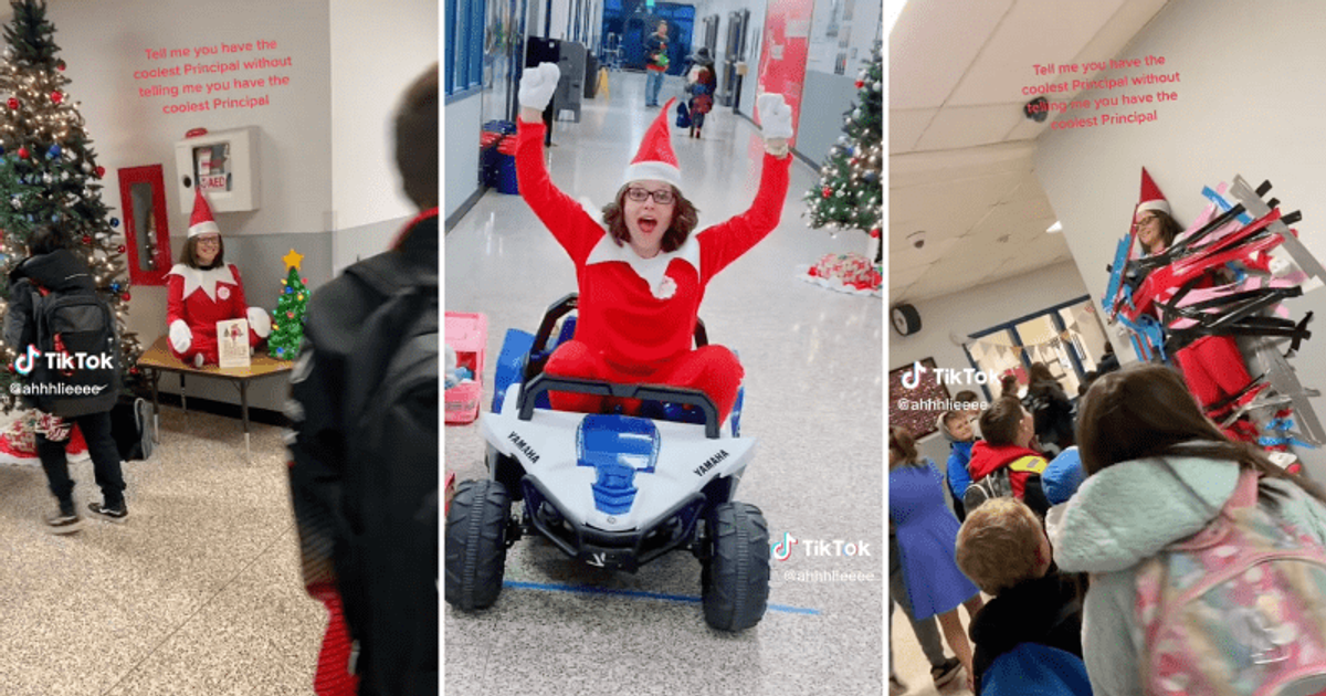 Apparently, it’s a popular thing for principals and teachers to dress like the Elf on the Shelf and show up in random places in between periods to lighten the mood during the last week of school before winter break. I’m just now hearing about this, but it’s been going on for over five years.