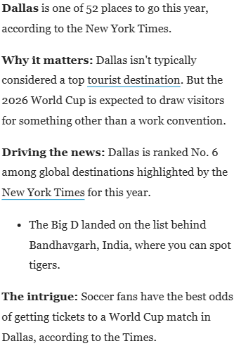 🤷♀️ Dallas is a top travel destination for 2026