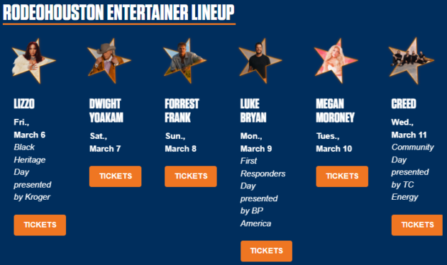Sidenote: The Houston Rodeo’s entertainment lineup is a bit more diverse than I expected, with Lizzo and Creed. Granted, Lizzo is from Houston.