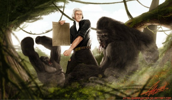 Thomas Jefferson Fighting Gorillas While Teaching Them About The Declaration of Independence