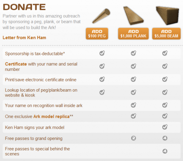 You’ve probably heard about all the tax breaks the Ark Encounter is getting in Kentucky, but in case you didn’t know, you can actually donate and have your name on the ark.