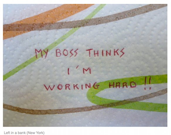 @rtinloo is a continuous art project where people leave personalized toilet papers in public toilets to be picked up and read by others.