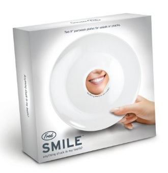 It’s always important to always look your best, especially at the dinner table. So between appetizer and entrĂ©e, sneak a peek at Smile and banish that telltale spinach. With its built in mirror, you’ll eat, drink and be pretty. Two 9-inch salad-snack-dessert plates in each gift box. Crafted from food safe, high fire ceramic.