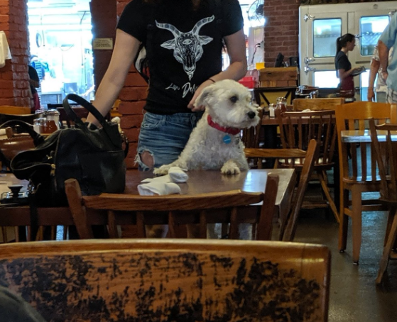 We ate at Babe’s Chicken Dinner House for lunch yesterday and a young adult woman brought what I assumed to be her emotional support or companion dog which literally sat at the table. A manager stopped by and the dog quickly removed his paws from atop the table as if he knew better. It appeared the manager was asking for some sort of card or paperwork but the young lady had a little trouble finding it, which I didn’t anticipate. I’d thought she would be used to having to show that sort of stuff and have it at the ready, especially since the dog didn’t have a vest or anything else to easily identify its role. Eventually, she provided the documentation and the animal stayed seated in the chair for the entire meal.