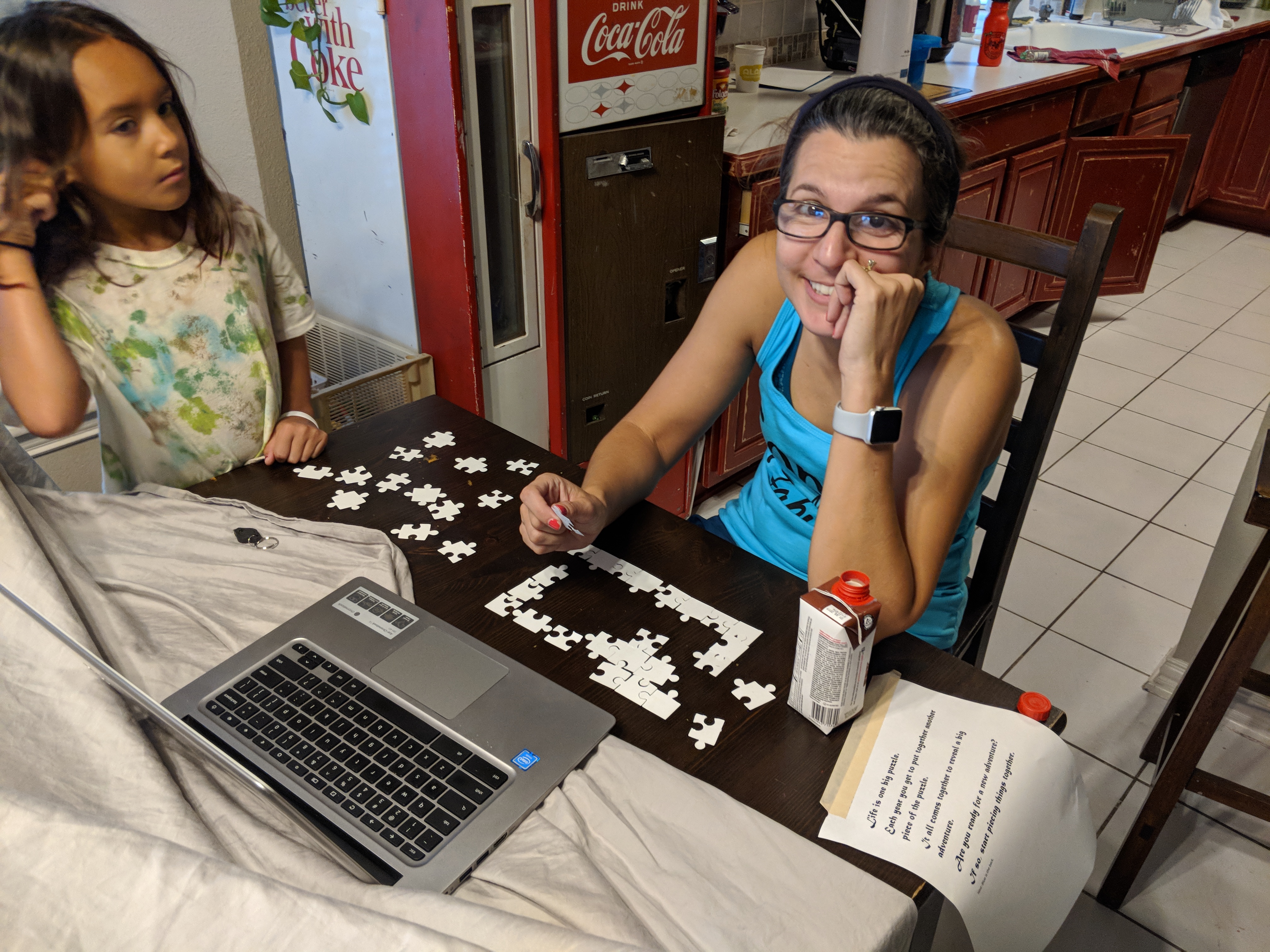 Thank you for all the birthday wishes. My first day of being 40 was AWESOME! My workout friends had a new shirt for me to wear that morning and cupcakes to share with everyone after we worked out. They also put a Happy Birthday balloon and a 100 balloon on my mat. 100 because I was on my 100th workout for CG. My coworkers surprised me with lunch, balloons, flowers, and cake. BoyGeeding gave me Blue Bell Cookie Dough ice cream with a Wicket card and DaughterGeeding gave me a bath ball with a sweet card from a memory when she was a baby. She also gave me an empty egg carton, but it wasn’t really empty; she had blown a kiss into each section. The best gift was from my hubby. He’s a pretty creative guy if you didn’t know. A card was stuck in the door which I went through early that morning when I went to work out. It was a glittery Mickey Mouse birthday card with a small black light inside. I immediately started looking for clues in the card and around the laundry room. Once I returned from my workout there was a letter on the door about life being a puzzle. As I walked into the house I noticed strips of paper on the floor with a couple of puzzle pieces. I continued to walk into the living room and was greeted with a “Happy Birthday” from my family and more strips of paper and puzzle pieces. The strips of paper all had facts regarding 40. For example, “Forty is the only English word that is written in alphabetical order”, “During Moses’ life he lived forty years in Egypt and forty years in the desert before God selected him to lead his people out of slavery”, “Minus 40 degrees, or “40 below,” is the only temperature that is the same in both Fahrenheit and Celsius.” Once I collected all the puzzle pieces I tried to put the puzzle together. This was very difficult because all the pieces were white. No picture. Keith eventually pulled up a picture of what it should look like so I could at least look at the shape of the puzzle pieces. It became a group effort to complete it. I thought I would never finish it and would be late for work. Eventually, the puzzle was put together, but was still white. I knew it must be time to use my black light. It revealed a message, but some of the pieces were upside down which made the letters upside down. Keith had to tell me the beginning, “Your journey is not yet complete…”I could make out the words ‘fly’, ‘beach’ and ‘Disney’. I looked up at Keith, who was recording everything, and said, “Are we going to Disneyland?” He said yes and we screamed! Not only was it a surprise to me, but also to our children. We were all ecstatic! We finished the morning celebration with White Chocolate Raspberry Bundt cake, smiles, and “I can’t believe we are going to Disneyland!” Stay tuned for another post about Disney!