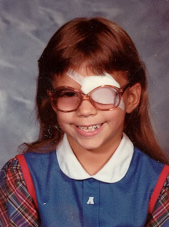 That’s a picture of WifeGeeding in kindergarten, sometime after she had her eye removed if memory serves correct.