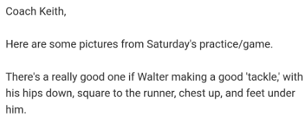 - After the game, a parent was nice enough to send me this email, which had a nice note about BoyGeeding. I forgive his small if/of typo.
