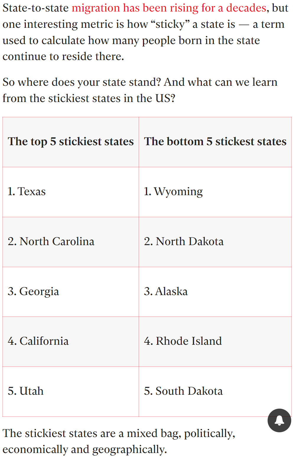 - The top five states people never want to move away from — and the ones they always leave